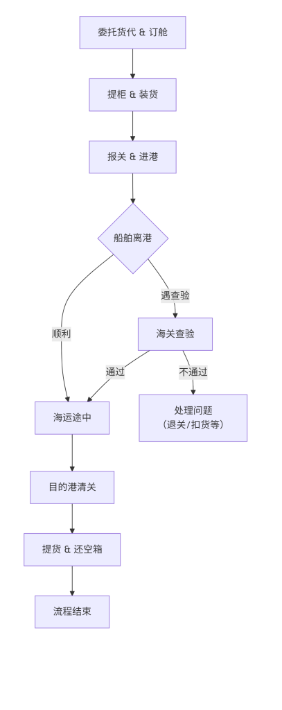 - 可能出现的情况: 若被海关查验,货代会协助处理,查验通过后可继续装船。