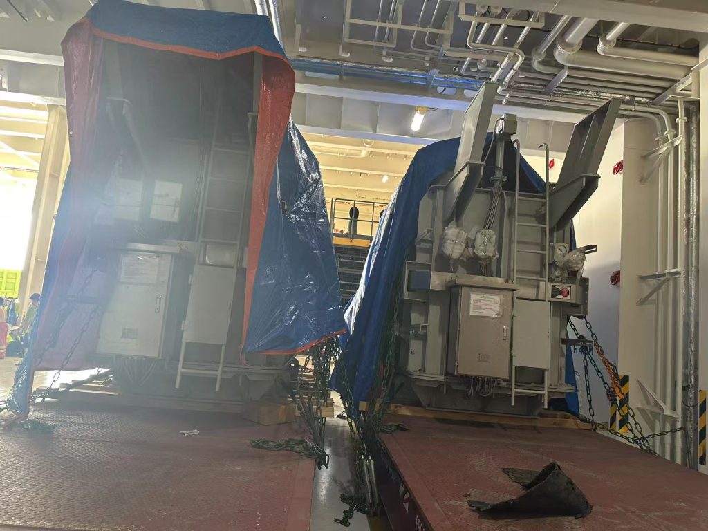 这是我司操作的变压器出口物流运输服务,安排的滚装船运输出口到非洲。