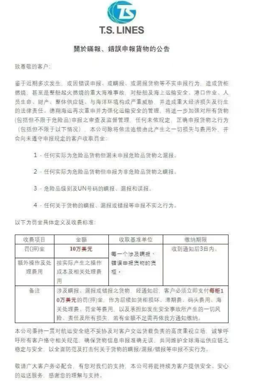 TSL 关于瞒报、错误申报货物的公告